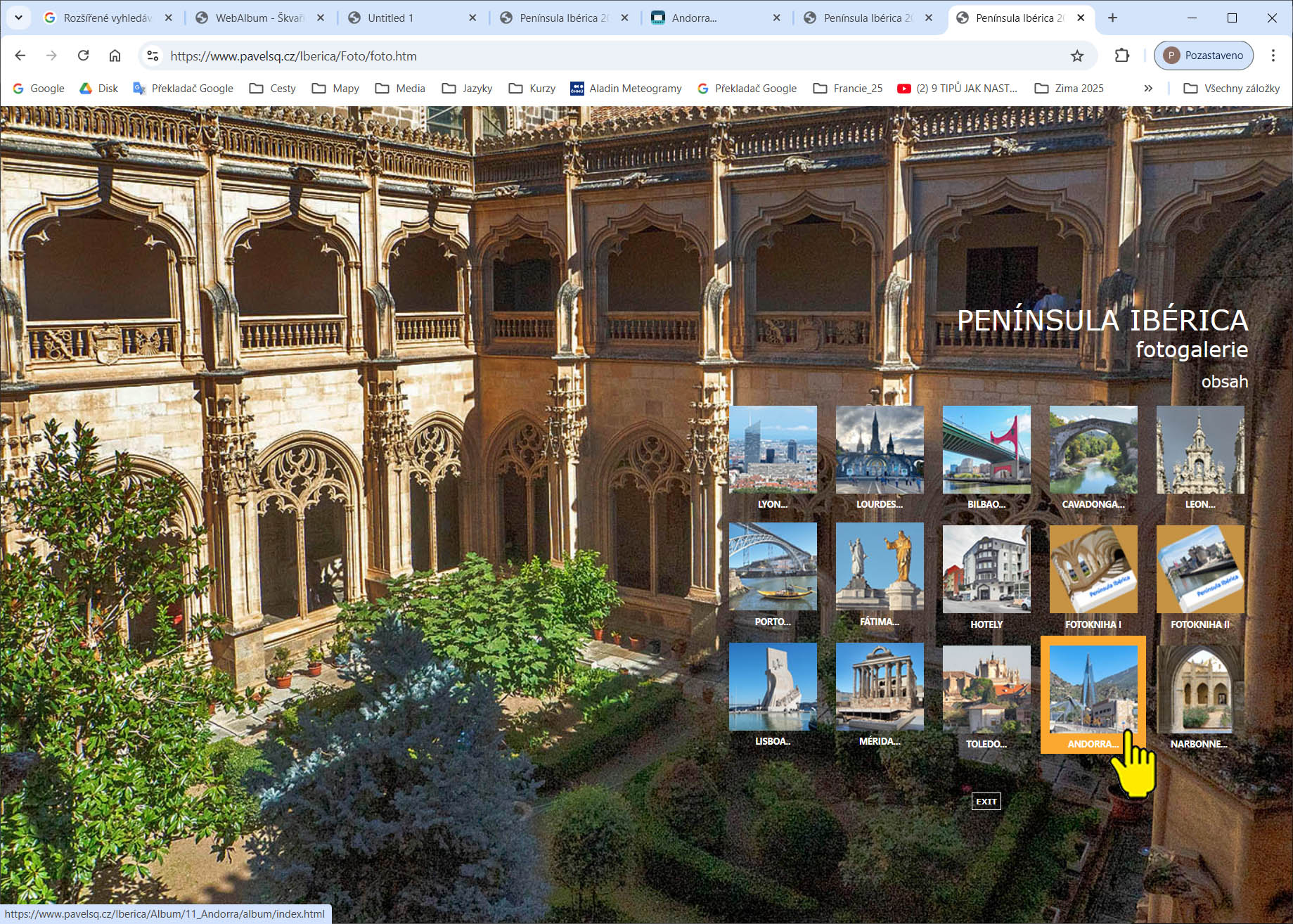 Najetím myši na zvolenou kapitolu se zobrazí zvýrazňovací rámeček a po kliknutí se otevře její fotogalerie.