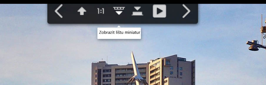 Pokud se pruh s miniaturami neobjeví, je možno ho otevřít z odkazu vlevo nahoře (tři vodorovné linky + název fotoknihy)