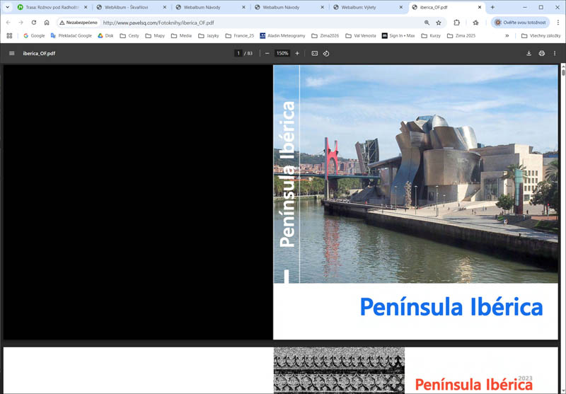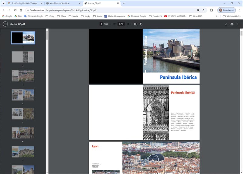 se otevře okno prohlížeče PDF formátu (v různých internetových prohlížečích se mohou lišit), po určité době indikované pruhem stahování se fotokniha zobrazí takto: