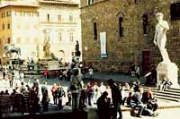 podrobné i odborné informace nechám povolanějším. Samostatným překvapením byla pro mě krajina kolem Florencie, která je hornatá (na italské poměry spíše pahorkatá) a hlavně hustě zalesněná, což jsem na jih od Alp nečekal. Prohlídka Florencie probíhala podle obdobného scénáře jako v Římě - ve stádu. Měli jsme ale velmi fundovaného a svérázného průvodce, který nás dokázal vodit po městě více jak pět hodin. Na prohlídku světoznámých muzeí a galérií nebyl čas, ale i tak jsme toho viděli dost. |
