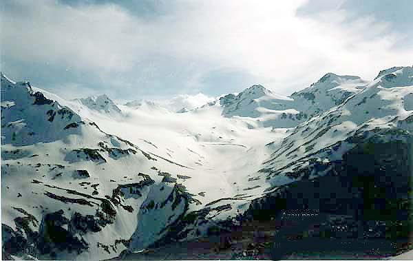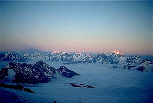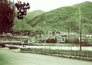 jednotlivých dolin. Přestože jsme se denně v této dolině pohybovali, nemám žádné černobílé fotografie z této zajímavé a atraktivní doliny, tak aspoň prezentuji několik fotek z jiných zdrojů. Na posledním spodním snímku je pohled na část města Tyrnyaus, které leží v dolní části baksanské doliny. Město má asi 50000 obyvatel a je zajímavé tím, že jsou zde bohaté doly na manganovou rudu (snad prý největší na světě). Doly jsou v kopcích nad městem a horníci tam jezdí lanovkou. Možná že podrobnější informace budou na stránkách zde anebo také zde. |