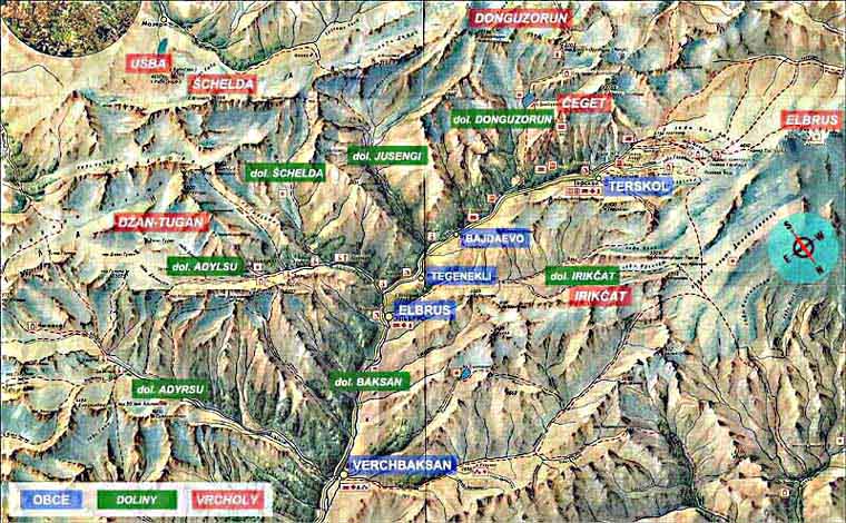 Centrální Kavkaz | Adylsu | Adyrsu | Baksan | Jusengi | Irik | Donguzorun | chelda | Elbrus | Uba | Mapy